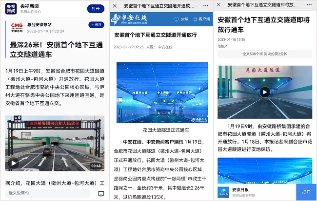 央视新闻、《安徽日报》、中安在线、《市场星报》、《合肥日报》对路桥集团项目建设情况进行重点报道。