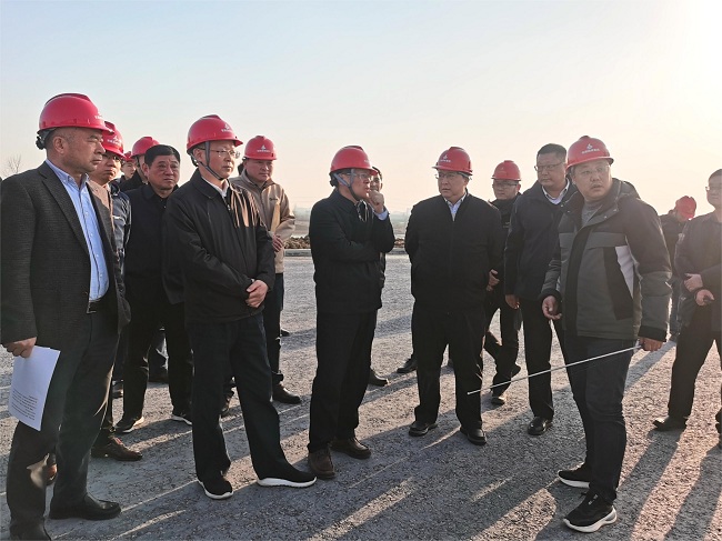 3月2日下午,安徽省交通运输厅党组书记、厅长章义一行赴来六高速04标项目调研指导,安徽来六高速公路开发有限公司董事长陈义兵,公司党委书记、董事长任杰,党委委员、副总经理江仲明,二分公司党总支副书记、总经理张立兵等参加调研。