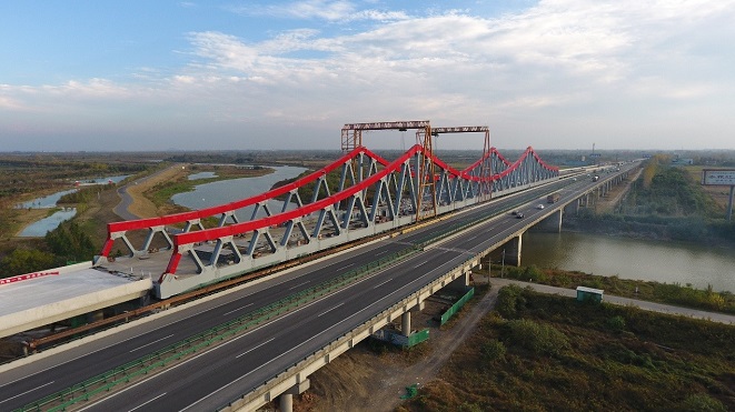 9、合安路中派河特大桥顺利合拢,科技创新不断推动。
