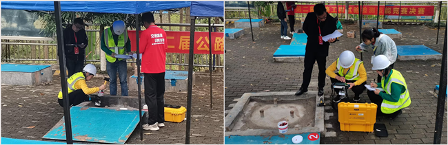 个人技能竞赛现场,张鹏、孙伟两位选手以熟练的操作、专业的技术、良好的精神风貌展示检测公司风采。