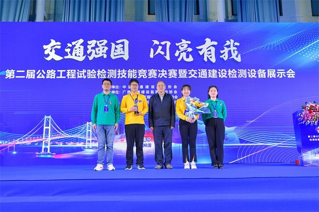 2023年3月25日,全国第二届公路工程试验检测技能竞赛决赛暨交通建设检测设备展示会在广西南宁举办。检测公司喜获团体第一名,张鹏、孙伟荣获个人技能竞赛亚军,张鹏荣获知识竞赛亚军,孙伟荣获知识竞赛季军。