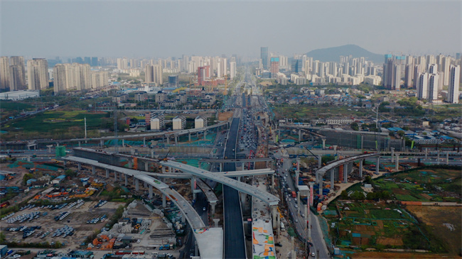 G312合六路(南岗镇-侯店路)工程项目起于侯店路,终于南岗镇双塘路,东西向全长2.54公里,南北向改造长度1.61公里。互通立交桥含合六路主线(左右分幅)及8条互通匝道工期18个月。主要工程有:道路、桥涵、排水、交通、照明等。项目于2022年6月20日开工,截止至目前,整体进度完成约为60%,主线桥梁结构已全线贯通,计划于5月1日放行通车。G312合六路(南岗镇-侯店路)工程建成后,将极大的改善现状道路目前的通行能力和服务水平,加强合肥市主城区与六安城际之间交通的联系,对改善沿线群众生活条件、促进区域经济发展、提升城市品质具有十分重要的意义。