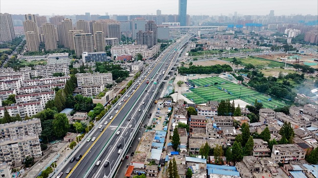 需要注意的是,项目进入三阶段施工后,交通导改封闭也迎来了新的调整。本次封闭调整时间从9月11日起持续至9月18日,封闭金寨路高架(南二环-习友路)段北向南西侧三车道,利用二阶段新放行路段,保证南向北、北向南均为三车道通行,地面道路保持双向8车道通行。