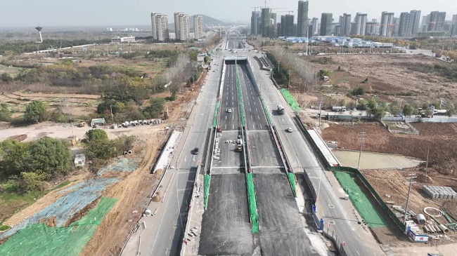 G312合六路(新桥大道-侯店路)工程施工1标段位于合肥市蜀山区,西起合六路与新桥大道交口(不含交口),东至合六路与三乘寺路交口,全长3.58公里,是连通合肥与六安的交通要道。建成后,六安到合肥的车程将缩短至30分钟以内,对推动区域路网的互联互通,促进沿线经济发展具有重要意义。开工建设以来,G312合六路(新桥大道-侯店路)项目围绕节点目标,坚持高标准谋划、高站位协调、高水平实施,克服拆迁量大,管线迁改等施工难题,以“时不我待、只争朝夕”的紧迫感全面部署推进施工生产。尤其是明理路下穿隧道施工,从第一块底板浇筑到主体结构顺利封顶,项目部仅用时38天,再次展现建工速度。在项目沥青面层施工过程中,还引入无人摊压技术。通过无人驾驶、协同调度、群控安全、智能压实技术和图像识别等关键技术,实现路面施工的智能作业和数字化管理,在保证安全的前提下完成项目高质量、高效率的路面摊压作业。