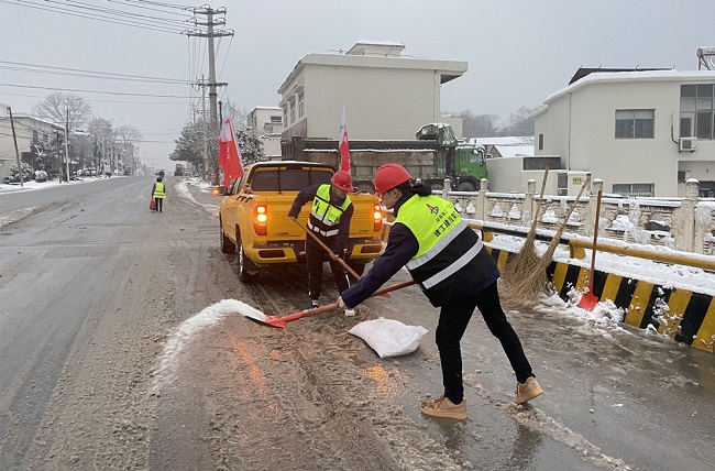 2023年12月18日下午,为保障当地居民的生活安全和正常出行,繁昌区G236改造工程项目党支部党员们、青年团员们向雪而行,主动前往G236沿线道路清扫积雪。