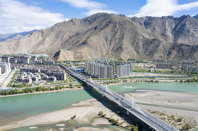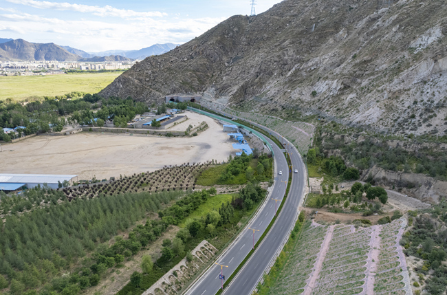 新建拉萨市环城路(北段)市政工程建设项目一标段,位于雪域圣城拉萨市中心城区北部,是全世界海拔最高的环城路。项目设计、施工与运营充分体现了绿色低碳理念,坚持环保选线,以桥代填,以隧代挖。生态路基与自然环境相通、边坡防护与特色景观协同、道路设施与民俗文化共融,建工建投集团的建设者们不畏高寒险阻,以高标准、严要求,打造了一条全面体现交通基础设施品质的民族风情路。