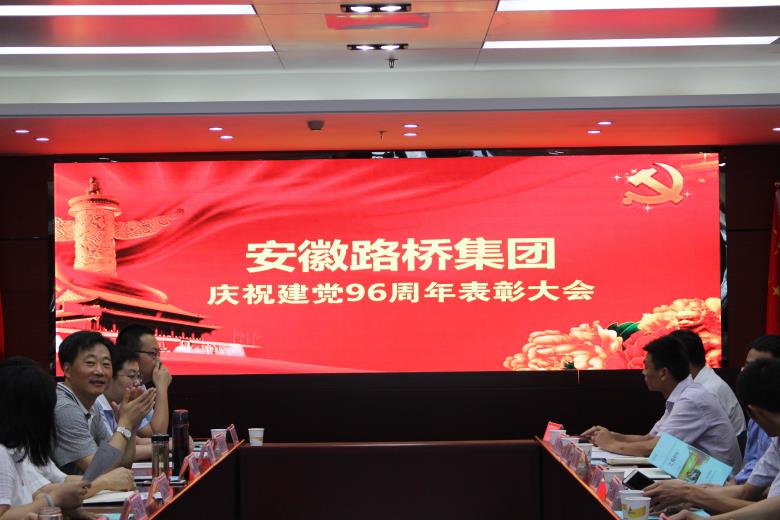 为庆祝中国共产党成立 96 周年,进一步推进公司基层党组织标准化建设,充分发挥党支部的战斗堡垒作用和党员的先锋模范作用,推动公司持续健康发展, 7月1日,安徽路桥集团党委召开庆祝建党96周年表彰大会。公司领导班子成员、中层管理人员、项目经理、及受表彰人员参加会议,公司党委委员、纪委书记、工会主席王胜利主持会议。