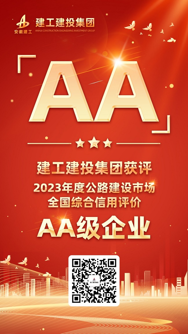 此次信用评价,全国共有946家公路施工企业参评,安徽建工建设投资集团有限公司获评“2023年度公路建设市场全国综合信用评价”最高级别AA级企业,充分体现了建工建投在行业内的高水准信用水平和综合实力,也为企业更好地参与未来市场竞争、做强业务提供了更加有利的条件。