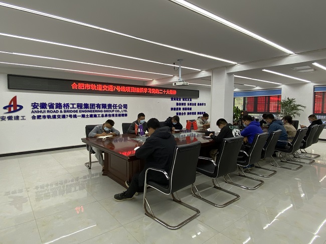 合肥市轨道交通7号线项目召开党的二十大精神学习宣贯会。会议要求,项目全体职工要深入学习党的二十大精神,进一步树立信心,提高业务技能,发扬斗争精神,心往一处想、劲往一处使,为助力“四个安徽建工”“百亿路桥集团”奋斗目标贡献项目全体职工力量!