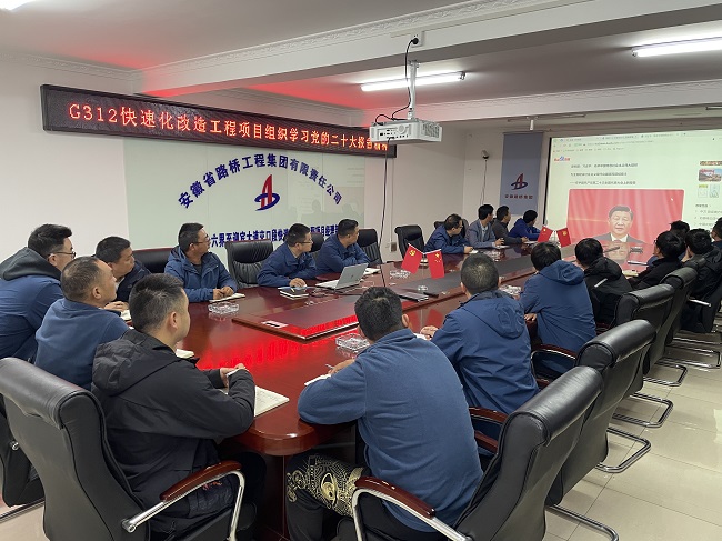 六安G312快速路项目召开党的二十大精神学习宣贯会。会议要求,项目全体职工要坚持以党的二十大精神为指引,把党的二十大报告的新部署、新要求、新观点转化为具体工作举措。围绕项目建设工作,提炼特色做法,打造亮点工程,以实干实绩实效向六安市民交出满意答卷。