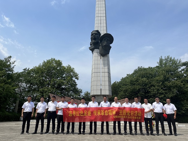 为庆祝中国共产党成立101周年,7月16日,六分公司党支部组织党员、入党积极分子、先进生产者同赴六安独山镇开展“追寻红色足迹 传承革命精神”主题党日活动。