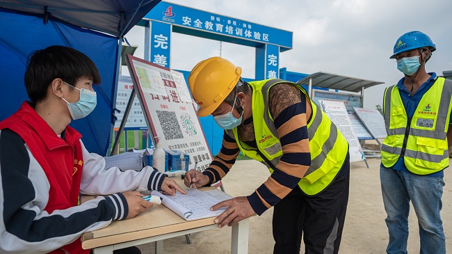 节日不停工,奋战在一线。槐树湾路项目组织开展了“高举‘五四’火炬,争当青年先锋”主题活动,引导项目青年员工坚守岗位,奋战施工、防疫一线。