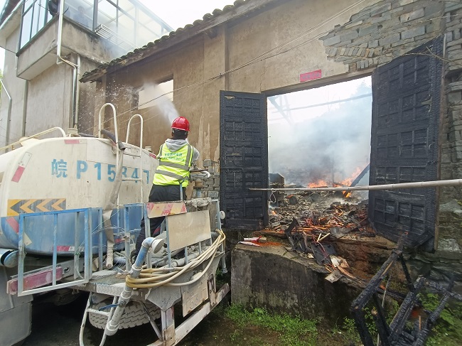 由于武阳乡地处山区,山路崎岖狭窄,消防人员赶到火灾现场至少需要40分钟,眼看火势顺着风势越来越大,现场情况十分危急,项目救援小队以最快速度赶赴火灾现场。火场中,队员们顶着滚滚浓烟和灼热的巨浪,在保证自身安全的前提下,积极灭火。经过半小时的奋力扑救,火势逐渐得到控制,为救援赢得了时间。最终,经过消防员的扑救,火势得以熄灭。现场人员全部安全疏散,无人员伤亡,最大程度减轻了人民群众的财产损失。