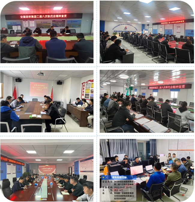 安徽路桥集团二届八次职工代表大会隆重召开后,所属各单位迅速行动,结合自身实际,充分利用各种宣传媒介及时宣传贯彻会议精神,让广大员工全面、准确地了解公司2022年工作思路、奋斗目标及总体工作部署,确保会议精神贯彻到一线、贯彻到每名员工,全力推动职代会精神入脑入心、落地有声。
