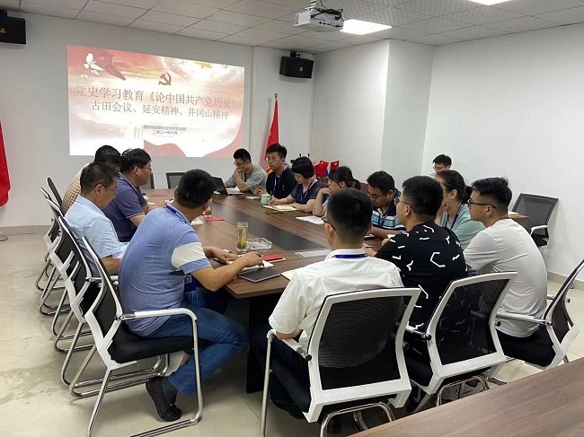 为庆祝建党百年华诞,贯彻落实党史学习教育,2021年年6月15日,五分公司组织开展《论中国共产党历史》专题学习研讨会,会议由党支部书记主持,机关全体员工参会。