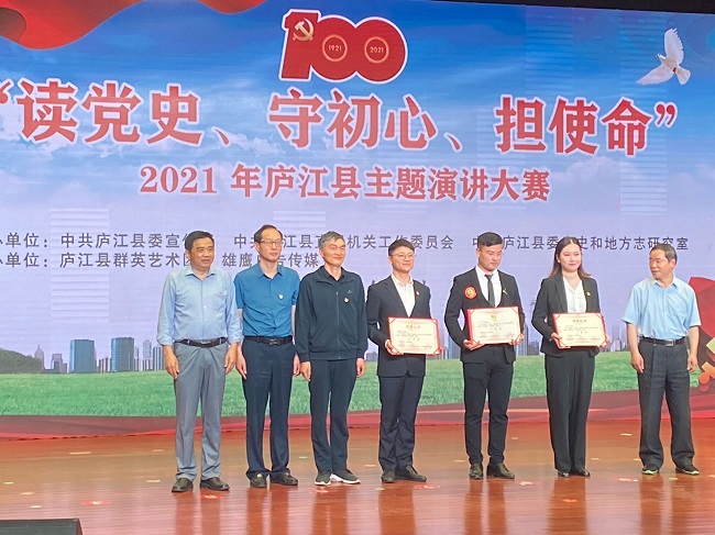 5月14日上午,由庐江县委宣传部、县直属机关工作委员会、县委党史和地方志研究室联合举办的“读党史、守初心、担使命”2021年主题演讲大赛在庐江县文化馆拉开了帷幕。庐江县塔山东路项目部高度重视此次活动,并积极寻求分公司党支部帮助,选派党群工作部苏宇帆同志代表项目部参加县重点中心举办的初赛,并最终以第一名的成绩代表县重点中心参加庐江县级比赛。