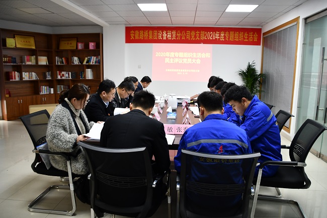 3月19日上午,设备租赁分公司党支部召开2020年度组织生活会并开展民主评议党员工作。公司党委委员、纪委书记王胜利同志及党工部相关同志到会指导,租赁公司全体党员参加会议,积极分子列席会议。