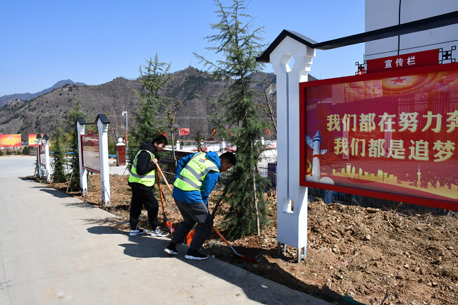 阳春布德泽,万物生光辉。正是春风送暖的好时节,栾卢项目的员工们在项目部所在的道路两侧栽下棵棵树苗,留下片片新绿。大家默契配合、分工协作,挥锹铲土、填入青松、扶直树苗、培实新土、提水浇灌,每一道工序都一丝不苟的完成。经过一上午的栽种,项目部主干道两侧全部种上青松。