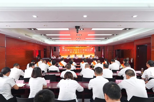 会议以现场加视频形式召开。公司机关中层管理人员,受表彰的先进基层党组织、优秀共产党员和优秀党务工作者,以及分子公司党政主要负责人、党群部负责人、机关支部全体党员在主会场参会。所属单位班子成员、项目党支部书记在视频分会场参会。