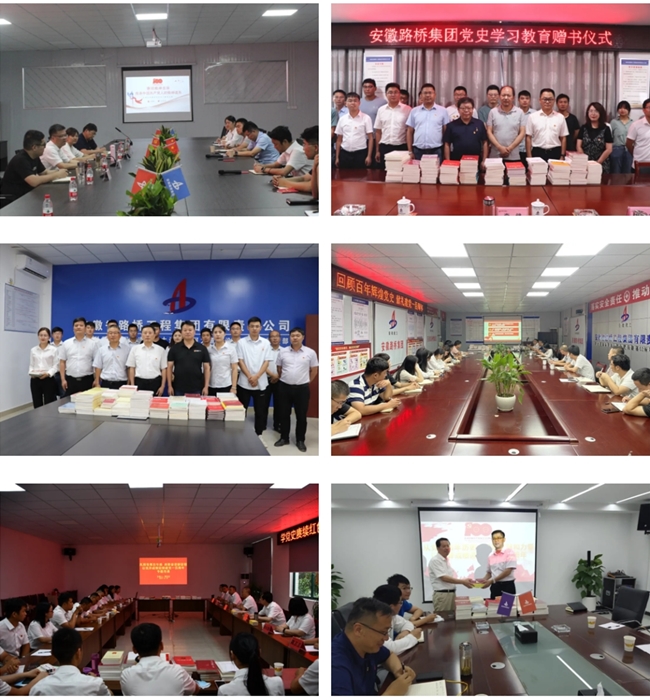 为推动党史学习教育深入人心,营造广大党员干部学党史、悟思想、办实事、开新局的学习氛围,安徽路桥集团党委书记、董事长盛明宏带领领导班子成员深入基层一线上党史学习教育专题党课,并赠送党史书籍。