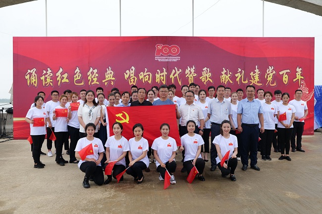 为庆祝中国共产党成立100周年,扎实开展党史学习教育,6月19日,公司工会、团委在庐江黄陂湖项目部共同组织开展了以“诵读红色经典 唱响时代赞歌 献礼建党百年”为主题的系列教育活动,50余名青年齐聚一堂,诵经典、唱红歌、听分享。公司党委委员、纪委书记王胜利,工会主席邵康等公司领导及五分公司有关负责人参加了此次活动。