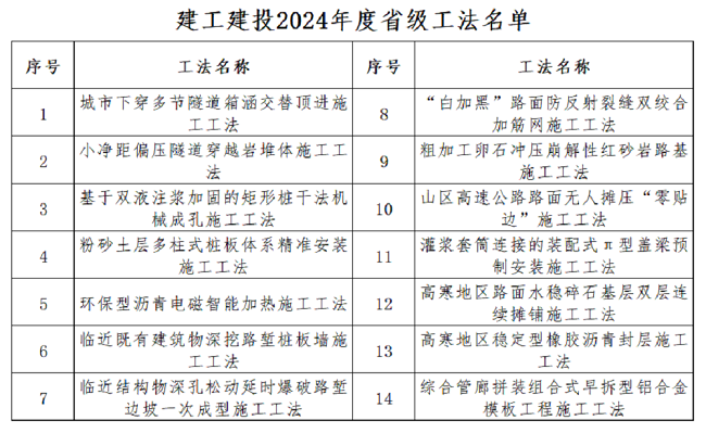 近日,安徽省住房和城乡建设厅发布安徽省2024年度省级工法通过名单。建工建投集团2024年累计共获得省级工法14项(含安徽省级工法11项,西藏自治区级工法3项),创公司历史新高,实现获评数量的三年连升,充分彰显公司的科技创新优势和技术转化能力。
