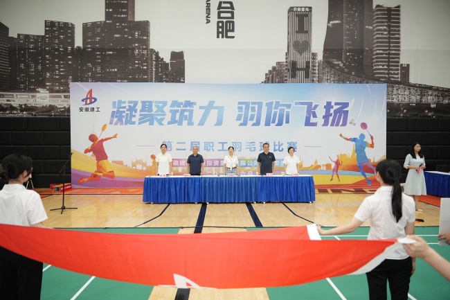 盛夏流萤,万物并秀。为庆祝中国共产党成立104周年,进一步凝聚起广大干部职工坚守初心使命、奋进新征程的磅礴力量,6月28日,建工建投集团“凝聚‘筑’力 ‘羽’你飞扬”第二届职工羽毛球比赛在合肥成功举办。建工控股工会副主席、信访办主任邢应梅出席开幕式并宣布开幕,公司党委副书记、工会主席干戈致开幕辞。公司领导班子、各分子公司党总支副书记、工会主席、党群部门负责人、全体运动员、裁判员参加开幕式。