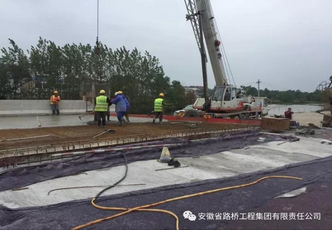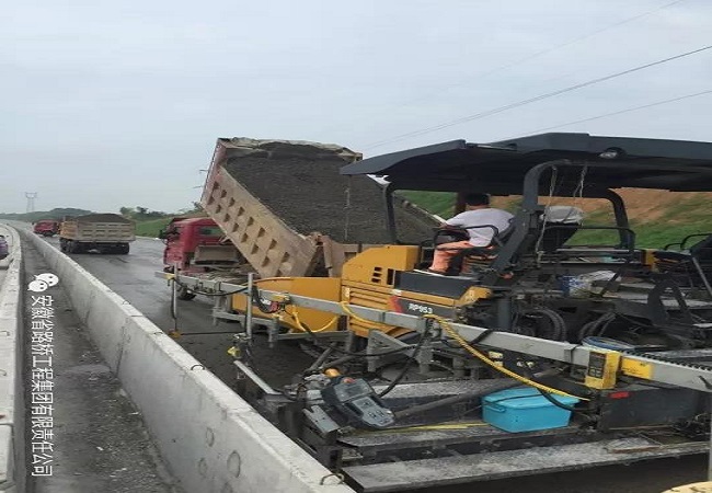 G347项目节日期间进行桥面铺装施工