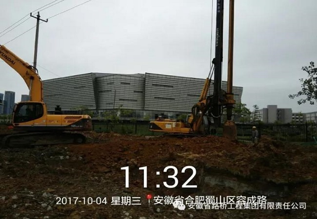 九龙路项目进行人行天桥桩基作业