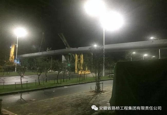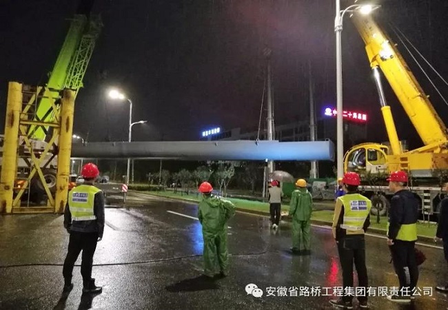 锦绣大道项目人行天桥钢箱梁正式开始安装