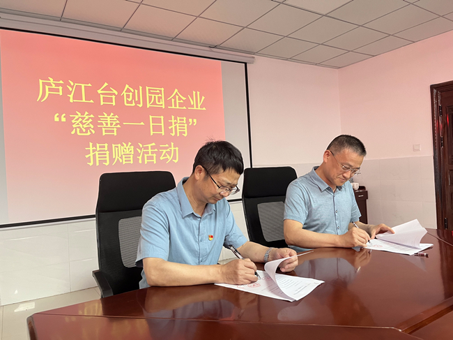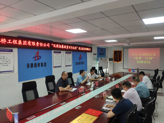 捐赠仪式上,王升副会长向与会人员介绍了此次募捐活动的由来及目的,详细讲述了庐江县实施“一米阳光”助残、“薪火相传”助学、“邻里守望”互助等三大社会帮扶工程的初衷和使命,并对公司的捐赠善举表示感谢。随后,干戈副书记与王升副会长签订关于设立“安徽路桥集团巩固拓展脱贫攻坚成果三大工程基金”的协议,庐江台创园管委会工会主席张波颁发捐赠证书。