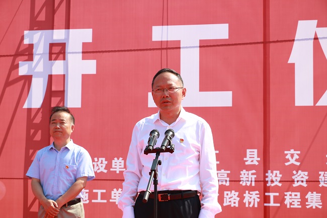 7月1日上午9时16分,阳光明媚,彩旗招展,庐江县二军路庐城段、万山段工程项目开工仪式在万山高速道口举行。县委书记许华为出席仪式并宣布开工。县人大常委会主任杨进真、县政协主席王世钧、副县长杨剑波出席仪式,副县长刘庆春主持仪式并致辞。公司党委副书记、总经理欧阳志宜,四分公司党总支副书记、总经理洪杰及相关人员等共同见证这一重要时刻。