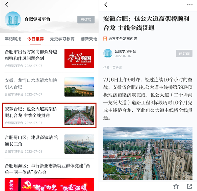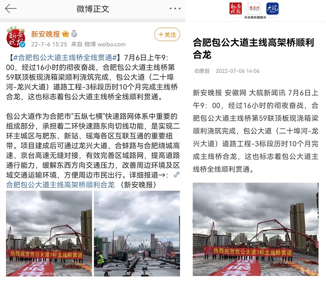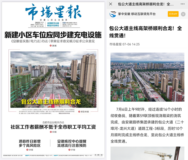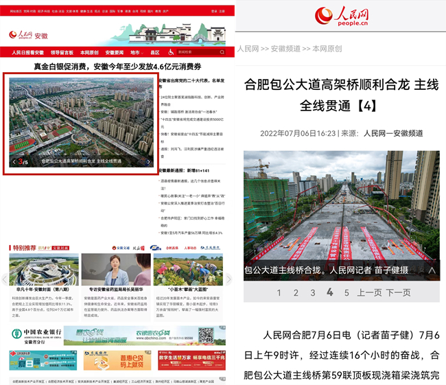 随后,学习强国、人民网、央广网、《安徽日报》、中安在线、《市场星报》、《合肥晚报》、《新安晚报》、安徽网等一批主流媒体重点报道路桥集团建设成果,网易、新浪、腾讯等平台对稿件积极转载。