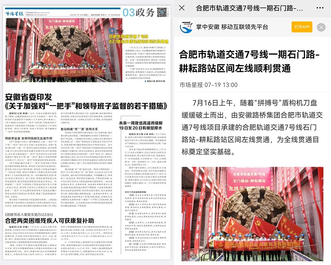 “合肥市人民政府”官方账号、《合肥日报》官方微信、中安在线及其所属新媒体平台、强国号,《市场星报》及所属新媒体客户端对这一节点重点关注,对路桥集团建设者的良好风貌进行细致描绘。