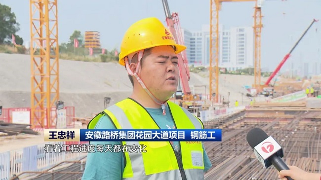 来自江苏盐城的钢筋工王忠祥,和工友们选择留在合肥,抢抓晴好天气加紧施工,力争让项目春节前具备通车条件。“看着工程进度每天都在变化,心里面也很高兴,下午给我们提前下班 ,大家一起吃月饼,给家人们打打电话,挺温馨的。”