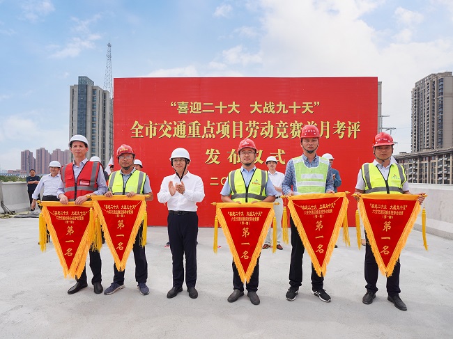 9月25日,六安市在建交通重点项目观摩会成功举办。本次观摩会以“喜迎二十大、大战九十天、全力保通畅、实现新跨越”主题劳动竞赛活动为重点,于安徽路桥集团G312快速化改造工程项目设置3个观摩点,通过实地参观、现场讲解、观看展板等方式,充分展示项目在安全标准化、智慧工地、新工艺等方面的经验做法。