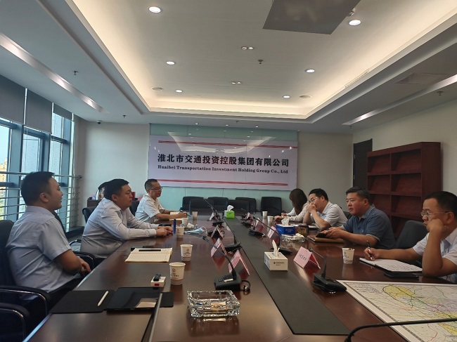 在淮北市,任杰与淮北市交通投资控股集团有限公司董事长苗中治举行会谈。
