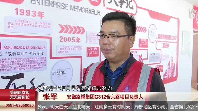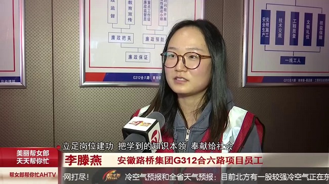 2022年10月16日,安徽经视《帮女郎帮你忙》以《筑路工人心向党 集中收看二十大开幕会》为题,报道G312合六路项目部职工收看开幕会盛况。