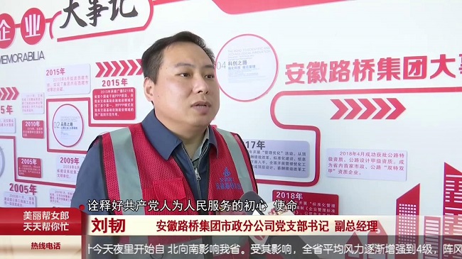 安徽路桥集团市政分公司党支部书记、副总经理刘韧:作为路桥集团一名基层党员干部,我将始终与党的要求同向同行,在做好本职工作的同时,始终将职工的安危冷暖放在心上,落实在行动上,诠释好共产党人为人民服务的初心、使命。