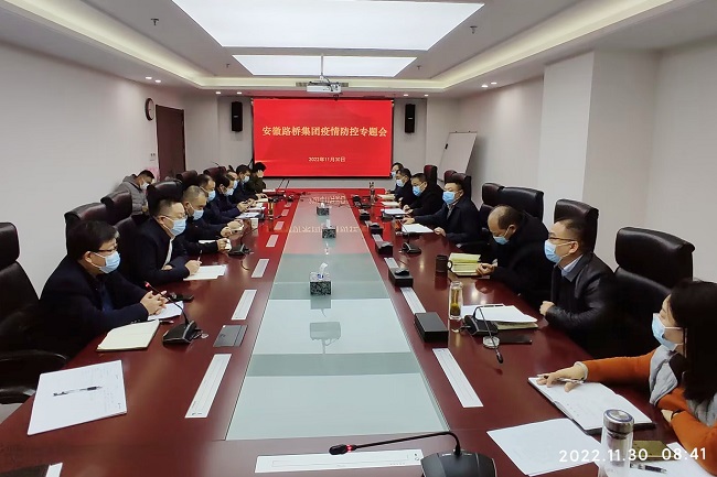 11月30日上午,安徽路桥集团疫情防控会议在9楼视频会议室召开。公司在肥领导班子成员、疫情防控工作组成员及所属各单位支部书记参加会议,会议由公司工会主席邵康主持。