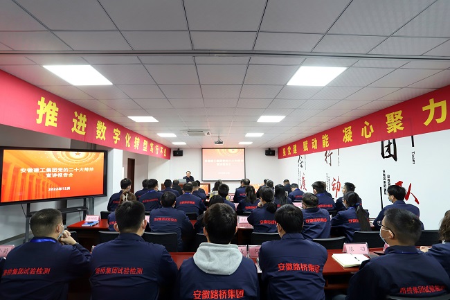 12月13日,建工控股党委副书记、总经理刘家静赴安徽路桥集团检测公司开展党的二十大精神专题宣讲。